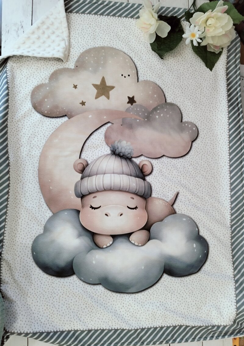 ⭐Calda copertina con davanti in jersey in fantasia e retro con caldo minky pile.