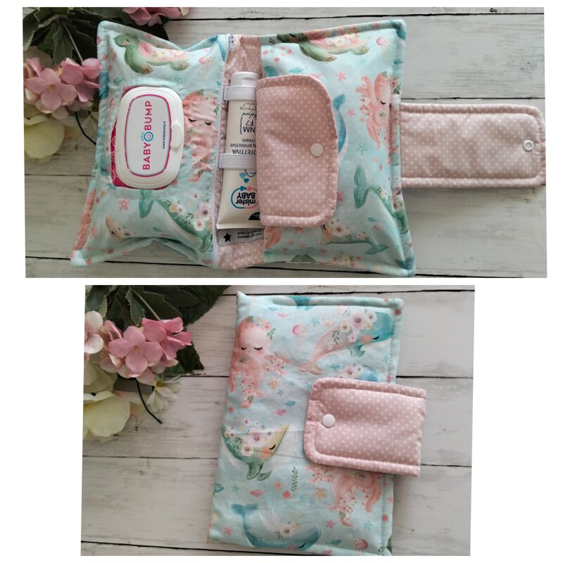⭐Porta pannolini con tasca per pannolini, salviette umidificate con comodo foro per estrarle ed elastici per tubetto di crema da 100 ml.