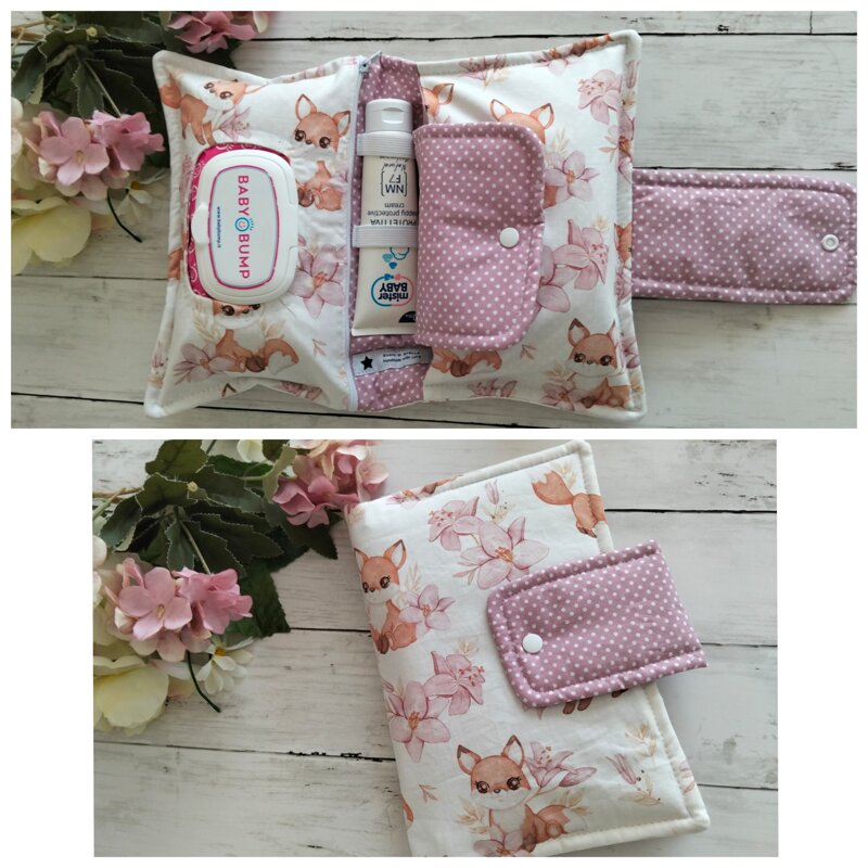 ⭐Porta pannolini con tasca per pannolini, salviette umidificate con comodo foro per estrarle ed elastici per tubetto di crema da 100 ml.