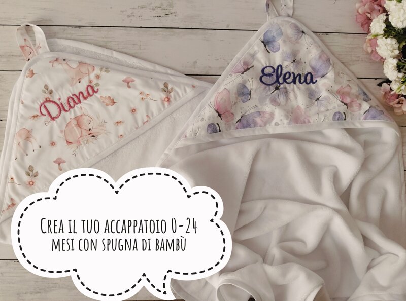 ⭐CREA IL TUO ACCAPPATOIO 0-24 mesi con morbidissima spugna di bambù SCEGLIENDO TRA LE FANTASIE PRESENTI NELLA GALLERIA FOTO.