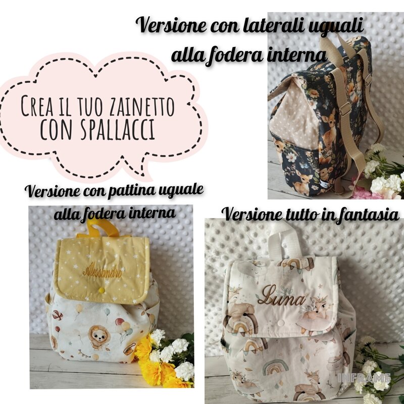 ⭐CREA il TUO ZAINETTO CON SPALLACCI disponibile in 3 versioni: scegli la tua versione dalla foto in galleria (se tutto in fantasia, con laterali come la fodera o pattina come la fodera).