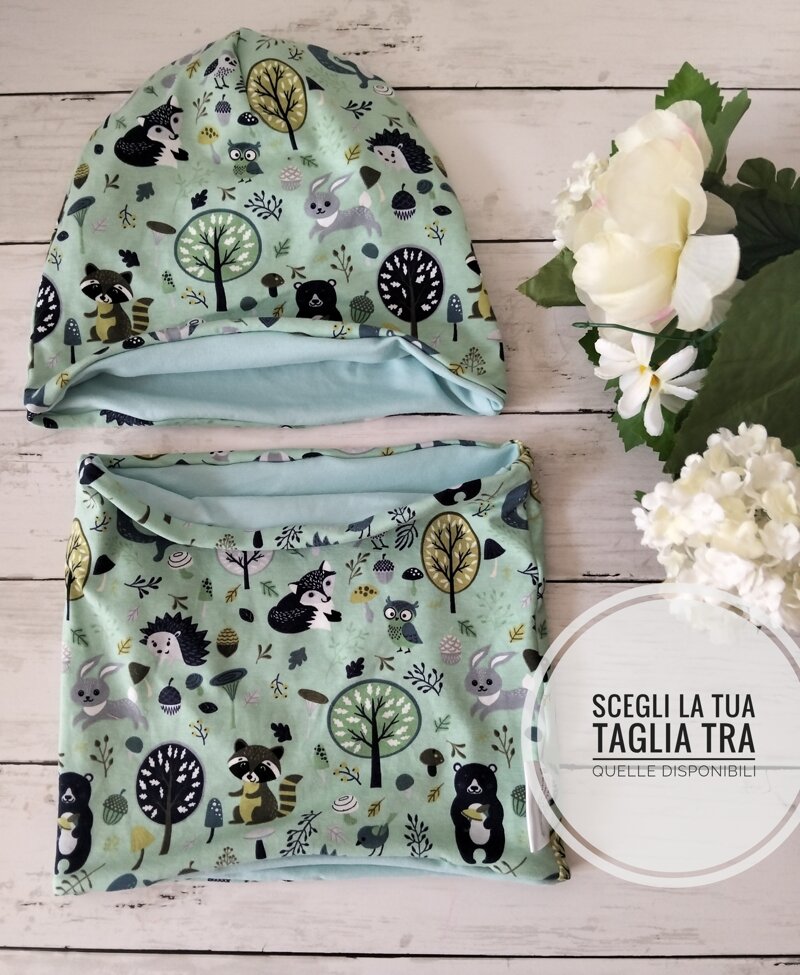 set-cappellino-e-scaldacollo-primavera-autunno-versione-animali-del-bosco-verde-acqua